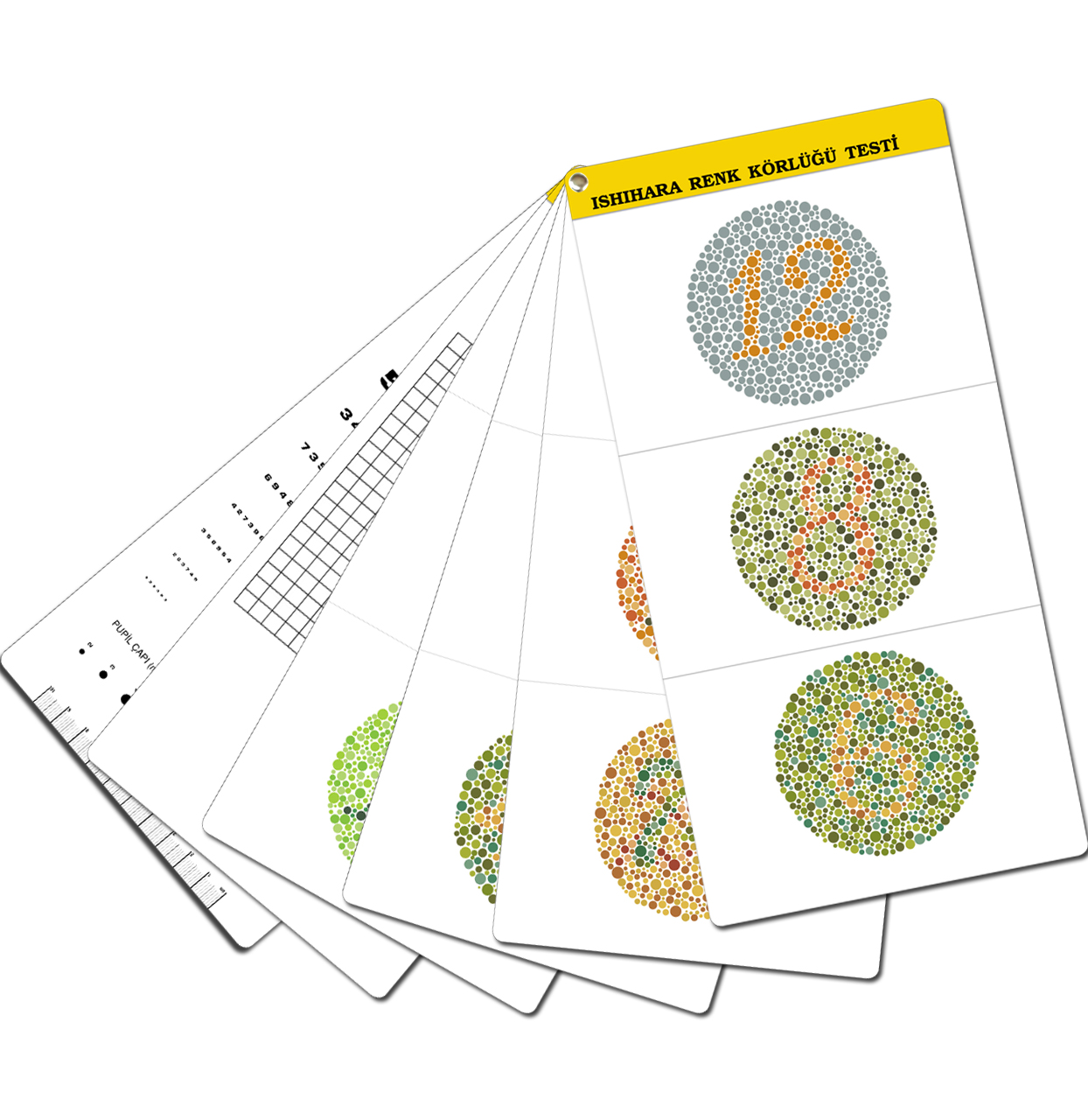 Ishihara renk körlüğü testi : Amsler Grid testi : Yakın okuma kartı